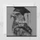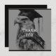 Create unique personalised graduation thank you cards. The front of the card has, "Thanks!" along with a custom eagle grad design. Add your special message on the back. The back also displays your name. Black and white colour hues. Use the template to personalise.