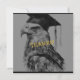 Create unique personalised graduation thank you cards. The front of the card has, "Thanks!" along with a custom eagle grad design. Add your special message on the back. The back also displays your name. Black and gold colour hues. Use the template to personalise.