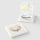 The coasters are gorgeous, a quality feel and heavy weight. They look like a precious archeological find. A rustic stone juxtaposed with a modern floral black and white print. I like the way the print goes slightly imperfect on the cut stone edges giving them a kind-of natural beauty.