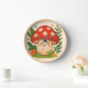 Add a touch of nature-inspired charm to any room with this delightful round wall clock. It features a vibrant, hand-painted style illustration of two red and white spotted mushrooms nestled among green foliage. Perfect for the kitchen, living room, or office, this whimsical timepiece brings a cozy, cottagecore aesthetic to your home decor