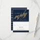 Unique, modern navy & gold script reply cards read "Kindly reply" with the reply-by date, and very simple RSVP wording in a white box below (so guests can easily write their names and acceptance in). Designed to match our unique modern black & gold script wedding invitations!