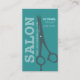 Modern cutting edge artistic illustration business card with hair salon stylist cutting scissors. Customised Blue green, soft blue and grey colours with edgy vertical layout gives a trendy stylish visual identity to this bold layout template business card design. A bold salon appointment option for your women's beauty spa business.