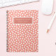 Unique kids office stationery notebook with a coral pink and white polka dots pattern, custom name template / subject title template. A cute and cool gift for back to school.
