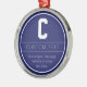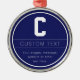 Unique Name & Monogram Template | Navy Blue Metal Ornament