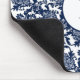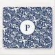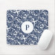 A striking navy blue damask pattern on a crisp white background, featuring intricate floral motifs and elegant curves. This design exudes sophistication and timeless charm.