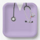 Nurse medical-themed party plates featuring lavender nursing scrubs and a stethoscope illustration to add something special to the celebration.