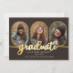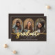 Classy and unique oblong photos 4-photo collage graduation announcement design featuring gold-tone rimmed photo templates and "graduate" gold-toned script text. Add graduate's name, class year and school on front along with three photos and add a separate photo and full announcement on back. Original design by Holiday Hearts Designs with photo template placeholder photos courtesy Omid Armin via Unsplash.