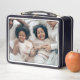 This is a standard metal lunchbox that appears to work just fine. We designed this box ourselves with an uploaded photo and custom text on the front and back. It looks absolutely beautiful except the front of the lunchbox is not centered like it shows in the photo. The print borders don't align with the inset flat part of the box where the preview photo online showed it perfectly centered in there. The back looks nice and centered though.