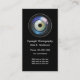 Cool photographer business card template with a camera lens and human eye graphic presented on high quality UV coated matte finish business card stock in vertical format. Customize the design online and make it your best presentation.