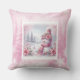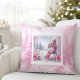 Unique Pink Snowman Christmas Scene Kids Holiday Cushion