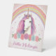 Unique Pink Unicorn, Roses, Rainbow Birthday Pedestal Sign