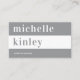 Simple elegant bold typography plain ultimate grey and white minimalist networking business card with a wide horizontal stripe. Suitable for a teacher, writer, designer, photographer, consultant, makeup artist, hairstylist, life coach, or any other independent profession.
