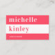 Simple elegant bold typography plain coral red and white minimalist networking business card with a wide horizontal stripe. Suitable for a teacher, writer, designer, photographer, consultant, makeup artist, hairstylist, life coach, or any other independent profession.