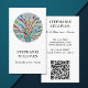 This unique QR Code business card is decorated with a colourful botanical mosaic design.