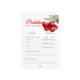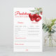 The "Unique Red Cherry Baby Shower Predictions Game" features a fun and interactive design with vibrant red cherries. Guests can make predictions about the baby’s birth date, weight, and other fun milestones. The charming cherry motif adds a playful and sweet touch, making it a perfect addition to a red cherry-themed baby shower. It’s a great way for guests to get involved and create lasting memories for the parents-to-be.