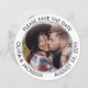 Announce the joyful news of your engagement and upcoming wedding with unique round custom photo save the dates. The 2 pictures and all wording on this invitation template are simple to personalise. (IMAGE PLACEMENT TIP: An easy way to centre a photo exactly how you want is to crop it before uploading to the Zazzle website.) The black and white design features two pictures of the engaged couple, trendy modern minimalist typography, and stylish handwritten script calligraphy. This unique announcement note card is an elegant and fun way to inform friends and family of your upcoming special day celebration. Congratulations to the bride and groom!
