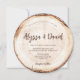 Celebrate your love with our "Rustic Wedding Wood Cut Grain Custom Invitation." Inspired by the charm of wood cut slice, tree bark often seen at beautiful and romantic rustic weddings, this unique round wedding invitation imitates a wood slice, showcasing the intricate tree rings that symbolise the growth and strength of your love. (Digital download option also available)