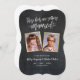 Unique Save the Dates engagement announcement featuring old childhood photos of the bride and groom. The announcement reads: “These kids are getting married”. The design features modern hand lettered script with a chalkboard background and faux gold frames. Upload fun old photos of the bride & groom when they were kids, and customise the wording.
