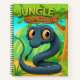Personalise the back cover of this adorable "Jungle Welcome" notebook! Featuring a unique whimsical baby indigo snake cartoon graphic tropical animal character in a lush forest scene, inviting you into a world of imagination and creativity. This reptile design is perfect for serpent lovers, woodland safari nature wildlife fans, and anyone who enjoys cute, cosy zoo vibes.