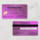 This is the perfect business card for a trendy, stylish, girly, and modern businesswoman. This design features a glamourous and chic faux printed diagonal sparkly dark magenta-purple glitter and bright magenta-purple ombre gradient design in the cute, unique, and clever style of a credit card. It's the perfect way to promote your business to potential customers.