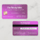 This is the perfect business card for a trendy, stylish, girly, and modern businesswoman. This design features a glamourous and chic faux printed diagonal sparkly dark magenta-purple glitter and bright magenta-purple ombre gradient design in the cute, unique, and clever style of a credit card. It's the perfect way to promote your business to potential customers.