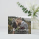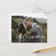 These classy, minimalist wedding elopement announcements feature fancy and unique elegant white typography as an overlay that says "Just Married." Your favourite wedding photo goes onto the front of the postcard, and you can add a personalised message to the back about your marriage.