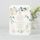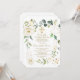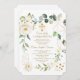 Elegant card design featuring watercolour delicate white flowers and green leaves, faux gold shapes, faux gold shining gold cross, on a white background. On the back white flowers bouquet on a white background. Use Personalise tool to add your info, change fonts, font's colours. For matching items, please, visit my Holy Communion Collection.