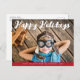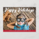 modern white happy holidays stylish white script photo card design. Customise the text and image details.