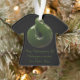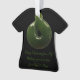 Christmas Decoration which can be customised with your own personal Xmas message for the Holiday Season. This design features Pounamu (or Greenstone) Pikorua Twist shape against a black background. Greenstone is a highly prized jade found in the South Island of Aotearoa NZ, and by custom carved pounamu is given as a gift for another. This Twist Shape is often seen as representing the intertwining and connecting of friends, lovers, family, cultures, lives, and whānau. This lovely design is a way to let family and loved ones know you are thinking of them this Holiday Season. This Xmas ornament has some text in green beneath the pounamu to make this particular Christmas Tree Decoration a lovely keepsake for many Christmas Celebrations. The text can be amended or replaced with your personal Christmas Message.