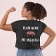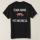 A women's customizable BBQ team member's tee shirt with 'Pit Mistress' on the back with pink pig. Customize both front and back of this shirt! Front of shirt is pocket size.