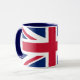 Enjoy your morning brew in true British style! This vibrant mug features the iconic Union Jack flag of the United Kingdom. With a bold red handle and interior, it's the perfect vessel for your English Breakfast tea. Personalize the back with your name or a favorite British slang phrase to make it your own. Durable, dishwasher safe, and a fantastic gift for any Anglophile or UK expat.