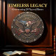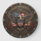 Celebrate a historic milestone with this high-energy patriotic wall clock commemorating the 250th anniversary of the United States. The central face features a high-definition graphic of a majestic bald eagle with wings outspread, positioned before a flowing American flag and a patriotic shield. To signify the weight of this heritage, the design is framed by deep red roses and the commemorative dates "1776–2026." While the artwork masterfully mimics the textured, 3D appearance of cast bronze or heavy carved wood with a rich patina, this is a lightweight and durable graphic timepiece rather than actual sculpted metal or timber. The white, handwritten-style numeric markers provide professional contrast against the dark, ornate background, ensuring the time is easy to read. This timepiece serves as a sophisticated focal point for a den, office, or commemorative display, making it a perfect self-gift for history enthusiasts.