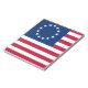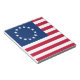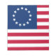 This item features the Betsy Ross flag, which was an early design of the United States national flag. It is named after an early upholsterer and flag maker who is said to have first created it. The pattern of the Betsy Ross flag is 13 alternating red-and-white stripes with stars in a field of blue in the upper left corner canton. Its distinguishing feature is thirteen 5-pointed stars arranged in a circle representing the 13 colonies that fought for their independence during The American Revolutionary War. Since the beginning of the 20th century, the flag has been a popular symbol of American patriotism.