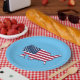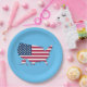 United States Map and Flag White Red Blue Paper Plate