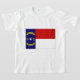 100% cotton so perfect for summer, It is a nicely designed t-shirt, the fabric is soft and the seams finished well, the body of the t shirt has no side seams. I bought a medium size for my two grandsons, aged 9 and 8 it will be slightly big on them but I would rather that than too small