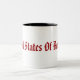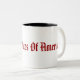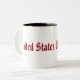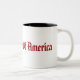 the mug here reads "united states of america" and is black on the inside,with red lettering on the outside.
