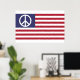This design features a variant of the national flag of the United States of America with a white peace sign in the blue top-left canton. It can be seen as a emblem of anti-war activism, symbolising hope for a better world.