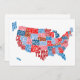 A typographic text map of the United States of America. Each state is represented by its name, which is shaped to fit into the geographically correct outline of the state. Red, white and blue text on a white background.