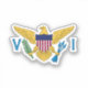 The flag of the United States Virgin Islands was adopted on May 17, 1921. It consists of a simplified version of the coat of arms of the United States between the letters V and I (for 'Virgin Islands'). The yellow-coloured eagle holds a sprig of laurel in one talon, which symbolises victory, and three blue arrows in the other (unlike the thirteen arrows in the US coat of arms), which represent the three major islands that make up the U.S. Virgin Islands: Saint Croix, Saint Thomas, and Saint John. When the Virgin Islands were owned by Denmark, the flag was a blue ensign with the Danish flag, or Dannebrog ('cloth of the Danes'), in the canton.
