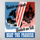 This vintage World War II poster features two factories divided by the American flag. One factory is functioning and the other is burned and destroyed. It declares, "United We Stand, Divided We Fall -- Beat The Promise". Celebrate American and WW2 History with this digitally restored vintage war poster product from The War Is Hell Store.