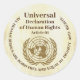 These round stickers have a rustic brown background and part of Article 01 from the United Nations Universal Declaration of Human Rights: All human beings are born free and equal in dignity and rights. This document, consisting of 30 articles, enshrines the rights and freedoms of all human beings. It was approved on December 10, 1948 after 48 of the 58 nations voted in favour (eight abstained and two failed to vote or abstained.)