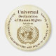 This round magnet has a rustic brown background and part of Article 01 from the United Nations Universal Declaration of Human Rights: All  human  beings  are  born  free  and  equal  in  dignity  and  rights. This document, consisting of 30 articles, enshrines the rights and freedoms of all human beings. It was approved on December 10, 1948 after 48 of the 58 nations voted in favour (eight abstained and two failed to vote or abstained.)