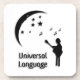 Great music design of a guitar player strumming notes to the quarter moon. The notes and stars are coming together and the moon is smiling because music is the Universal Language.