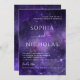 Universe night star. Purple space rehearsal dinner Invitation
