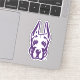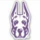 This design is a close-up of the University at Albany Great Dane mascot head. The illustration uses bold purple outlines with detailed shading in grey for the Great Dane's face, highlighting its angular features. The eyes are sharp, and the expression conveys alertness and strength. Accents of gold appear on either side of the dog's jaw, adding a touch of warmth to the otherwise fierce look. The ears are upright and pointed, reinforcing the logo's sense of readiness and authority. The design is minimal yet powerful, ideal for branding UAlbany’s athletic identity.