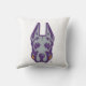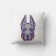 This design is a close-up of the University at Albany Great Dane mascot head. The illustration uses bold purple outlines with detailed shading in grey for the Great Dane's face, highlighting its angular features. The eyes are sharp, and the expression conveys alertness and strength. Accents of gold appear on either side of the dog's jaw, adding a touch of warmth to the otherwise fierce look. The ears are upright and pointed, reinforcing the logo's sense of readiness and authority. The design is minimal yet powerful, ideal for branding UAlbany’s athletic identity.