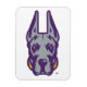 This design is a close-up of the University at Albany Great Dane mascot head. The illustration uses bold purple outlines with detailed shading in grey for the Great Dane's face, highlighting its angular features. The eyes are sharp, and the expression conveys alertness and strength. Accents of gold appear on either side of the dog's jaw, adding a touch of warmth to the otherwise fierce look. The ears are upright and pointed, reinforcing the logo's sense of readiness and authority. The design is minimal yet powerful, ideal for branding UAlbany’s athletic identity.