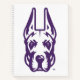 This design is a close-up of the University at Albany Great Dane mascot head. The illustration uses bold purple outlines with detailed shading in grey for the Great Dane's face, highlighting its angular features. The eyes are sharp, and the expression conveys alertness and strength. Accents of gold appear on either side of the dog's jaw, adding a touch of warmth to the otherwise fierce look. The ears are upright and pointed, reinforcing the logo's sense of readiness and authority. The design is minimal yet powerful, ideal for branding UAlbany’s athletic identity.