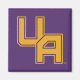 The The University at Albany initials logo features a bold and dynamic "UA" design, rendered in the university's signature purple and outlined with a striking gold border. The angular, block-like letters give the logo a strong and authoritative appearance, perfect for representing school pride and identity. The symmetrical and geometric structure of the letters conveys a modern and professional aesthetic.