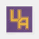 The The University at Albany initials logo features a bold and dynamic "UA" design, rendered in the university's signature purple and outlined with a striking gold border. The angular, block-like letters give the logo a strong and authoritative appearance, perfect for representing school pride and identity. The symmetrical and geometric structure of the letters conveys a modern and professional aesthetic.